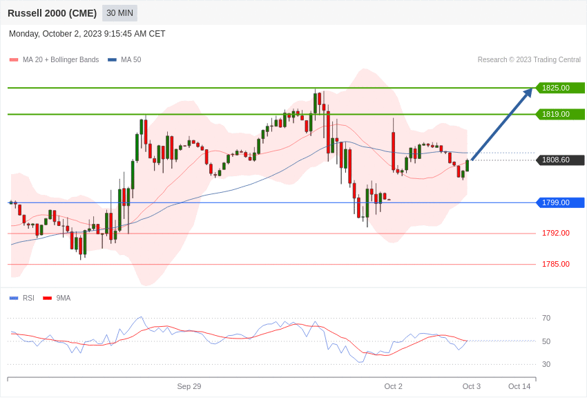 Index Russell 2000 - Intradenní výhled 2.10.2023