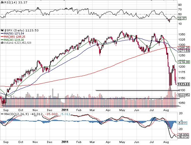 Situace je shodná s předchozím týdnem. Trh zůstává dále nestabilní a všechny indikátory jsou negativní. Index S&P 500 ztratil minulý týden 4,5% a přeprodané podmínky mohou ovlivnit krátkodobý rychlý růst. V souvislosti s propady trhů se objevil termín „krize sebevědomí“. Hladina supportu je nyní na 1100-1120 a pak 1040-1060. V případu růstu je před námi nejbližší rezistence na 1150.
