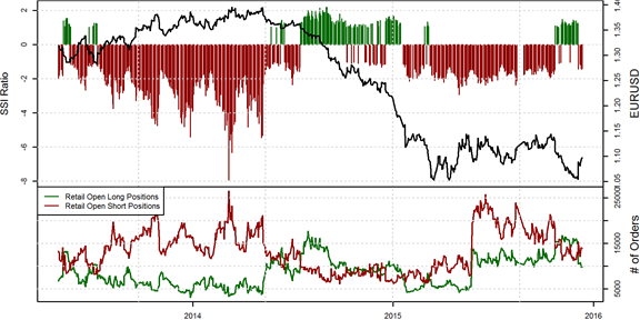 Index spekulativního sentimentu (SSI index) a aktuální otevřené obchodní pozice na FOREXU od retailových traderů. Podrobný popis tohoto indikátoru najdete zde. -