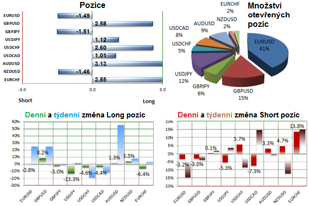 Index spekulativního sentimentu (SSI index) a aktuální otevřené pozice na Forexu. -