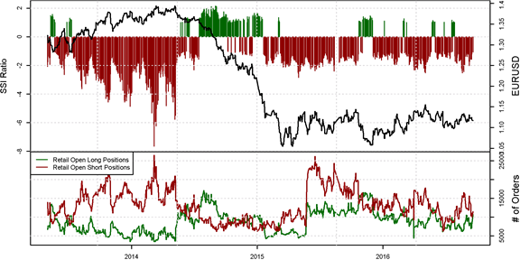 Index spekulativního sentimentu (SSI index) a aktuální otevřené obchodní pozice na FOREXU od retailových traderů. Podrobný popis tohoto indikátoru najdete zde. -