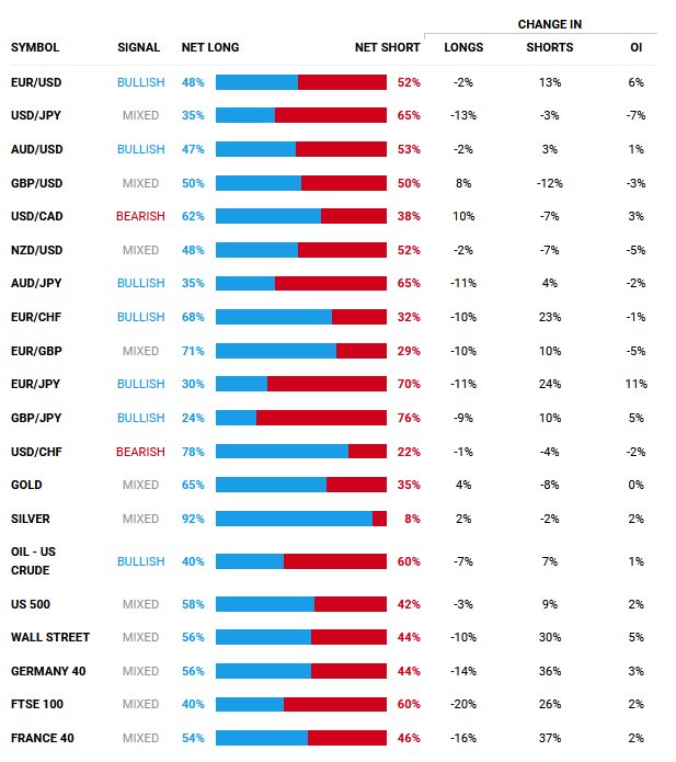 Index spekulativního sentimentu (SSI index) a aktuální otevřené pozice na Forexu. -