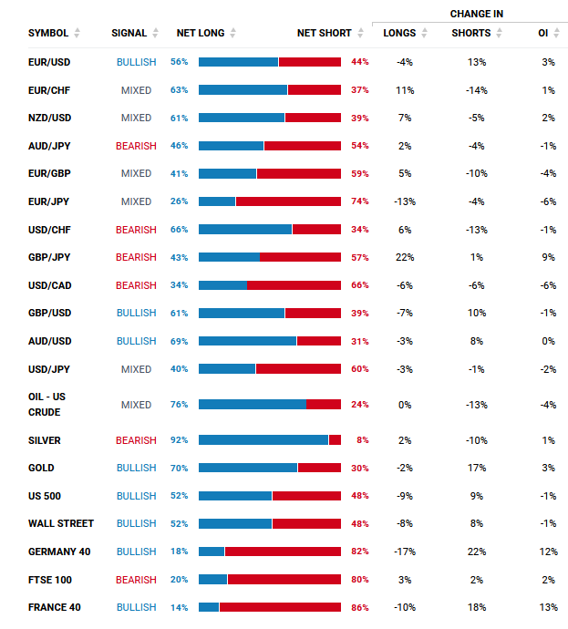 Index spekulativního sentimentu (SSI index) a aktuální otevřené pozice na Forexu. -