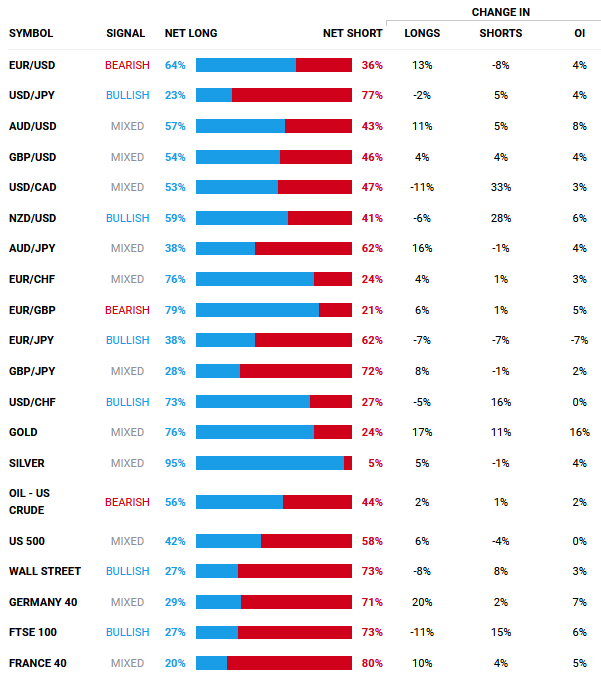 Index spekulativního sentimentu (SSI index) a aktuální otevřené obchodní pozice na FOREXU od retailových traderů. Podrobný popis tohoto indikátoru najdete zde. Zdroj: DailyFX a broker IG Tým www.fxstreet.cz