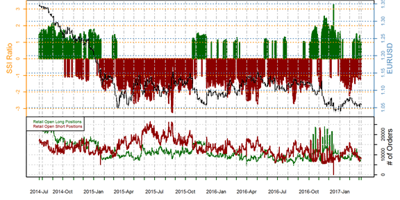 Index spekulativního sentimentu (SSI index) a aktuální otevřené obchodní pozice na FOREXU od retailových traderů. Podrobný popis tohoto indikátoru najdete zde. -