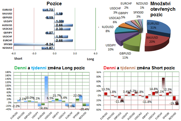 Index spekulativního sentimentu (SSI index) a aktuální otevřené pozice na Forexu. -