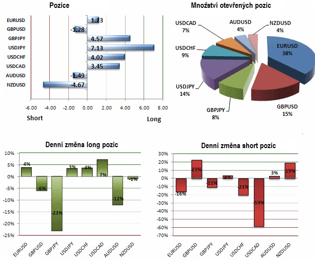 Index spekulativního sentimentu (SSI index - FXCM) a aktuální otevřené pozice na Forexu. -