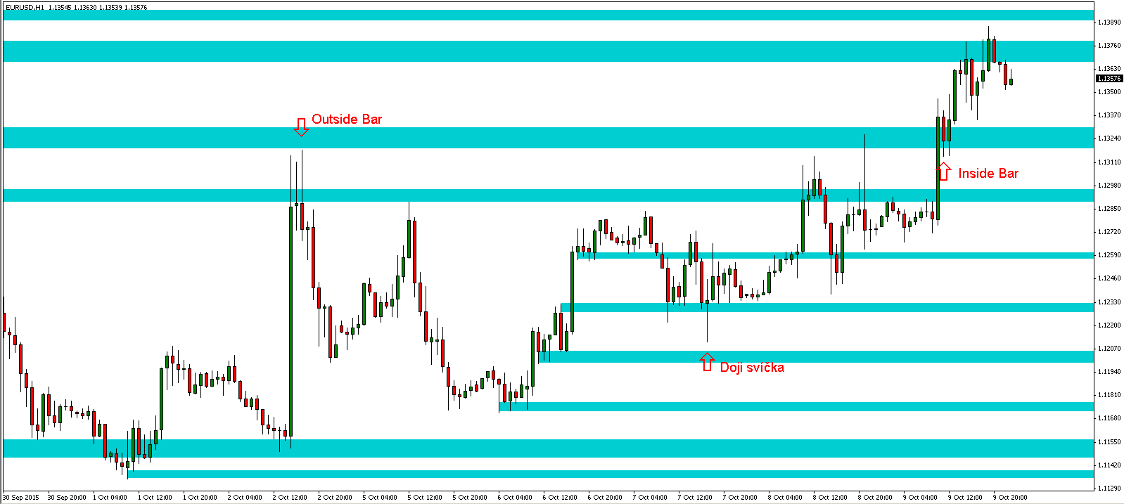 - Také je důležité si uvědomit, že indikátory nejsou svatým grálem a běžně nemají k dispozici žádné nové či lepší informace než máme my v obchodní platformě při obchodování Price Action - každý indikátor má ve svém kódu matematický vzorec, podle kterého se propočítává, avšak tyto vzorce mohou vycházet jedině z těchto číselných informací: otevírací cena, uzavírací cena, maximum, minimum a objem - tedy pouze informací, které v obchodní platformě máme dostupné.
