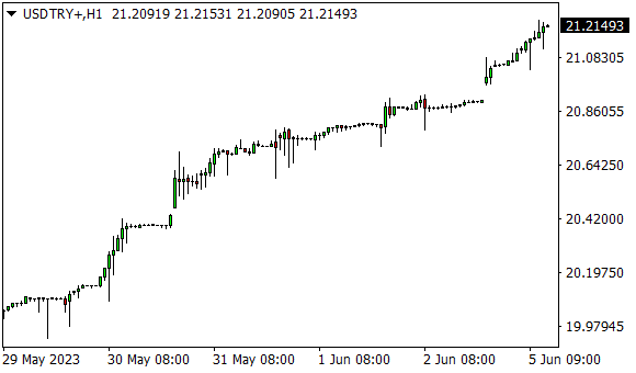 Vývoj měnového páru USD/TRY (1hodinový graf - H1):