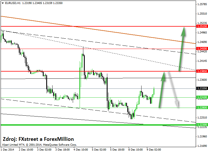 Měnový pár EUR/USD se pohybuje v intradenním rostoucím trendu. Jeho pokračování můžeme očekávat, dokud se EUR/USD bude obchodovat nad úrovní supportu 1,2310. Potom bychom mohli očekávat růst směrem k rezistenci 1,2385, případně i k rezistenci 1,2515.