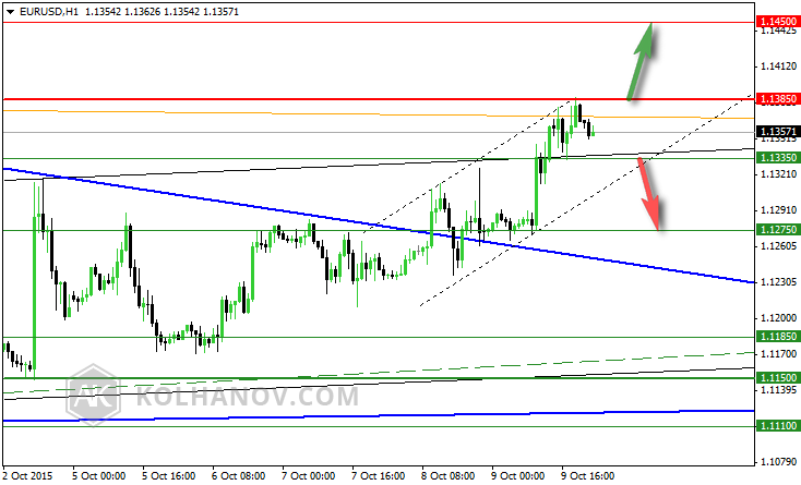 Měnový pár EUR/USD se obchoduje v intradenním rostoucím trendu. Jestli se dostane nad rezistenci 1,1385, růst pak zřejmě bude pokračovat k hladině 1,1450.