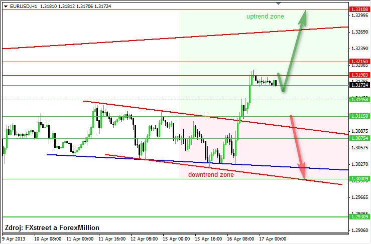 Dokud se měnový pár EUR/USD bude obchodovat nad supportem 1,3115, zůstane v intradenním rostoucím trendu a zřejmě bude pokračovat v růstu k další rezistenci 1,3310.