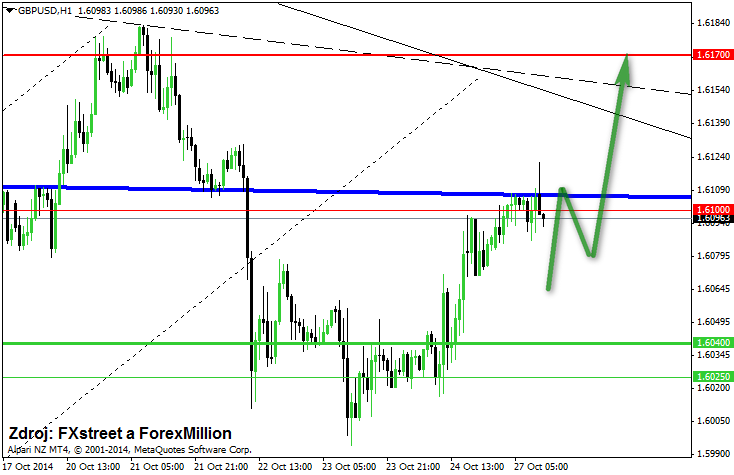 Měnový pár GBP/USD se pohybuje v intradenním rostoucím trendu. Jeho pokračování budeme očekávat, dokud se GBP/USD udrží nad úrovní supportu 1,6040. Pak budeme očekávat růst směrem k rezistenci 1,6170.
