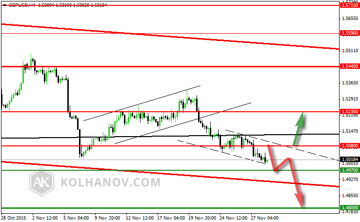 Měnový pár GBP/USD se obchoduje v intradenním klesajícím trendu. Dokud zůstane pod rezistencí 1,5080, pokles zřejmě bude pokračovat až k hladině 1,4800.