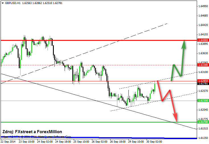 Pokud by naopak GBP/USD stoupl nad úroveň rezistence 1,6285, bylo by to zahájením intradenního rostoucího trendu. Pak bychom očekávali růst směrem k rezistenci 1,6330, případně až k 1,6400.
