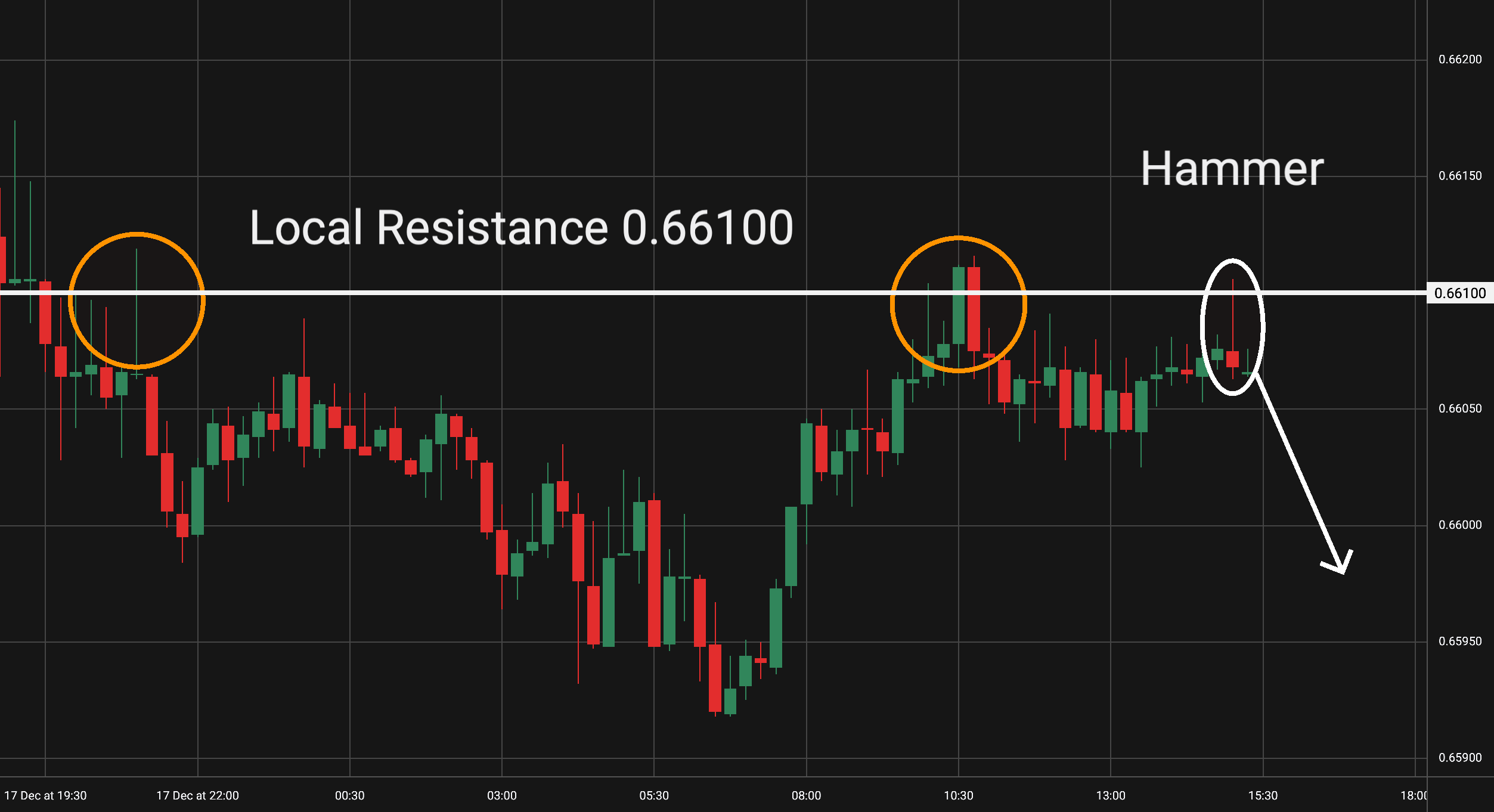 Intradenní Price Action patterny na AUD/USD 18.12.2025