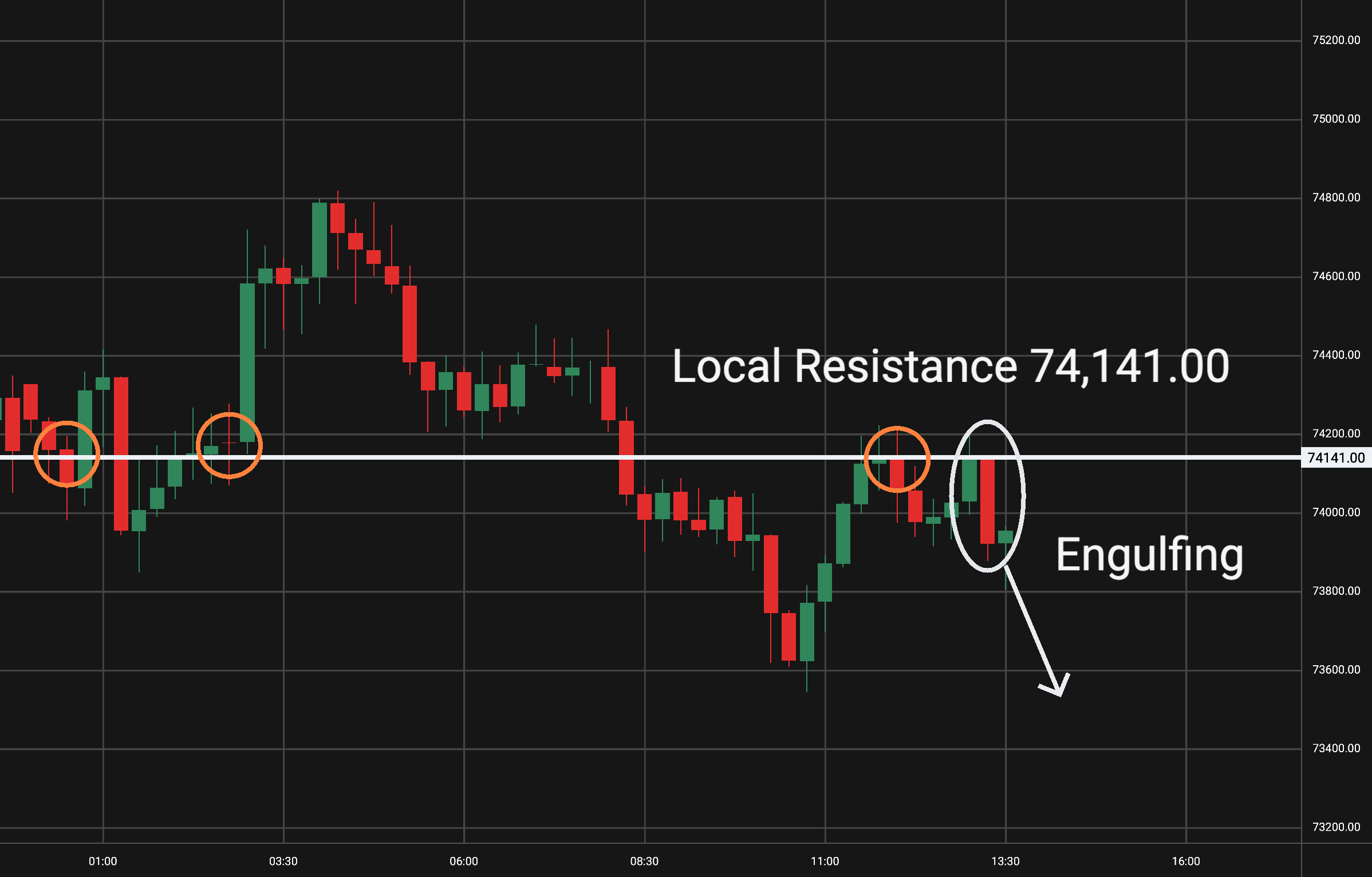 Intradenní Price Action patterny na bitcoinu 13.6.2024