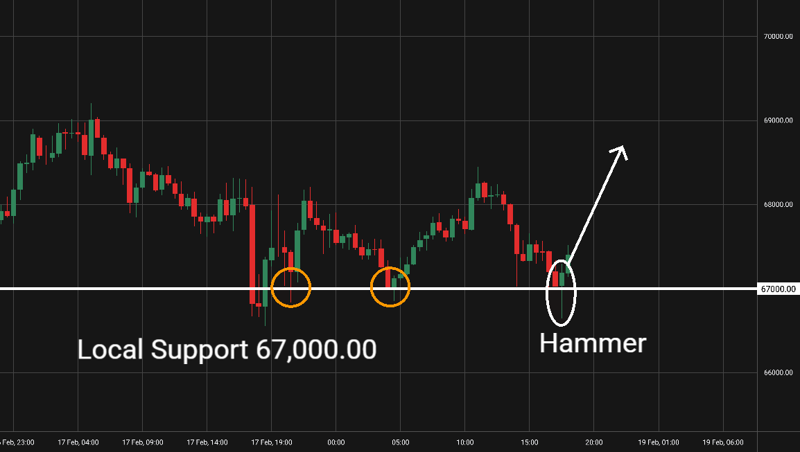 Intradenní Price Action patterny na bitcoinu 19.2.2024