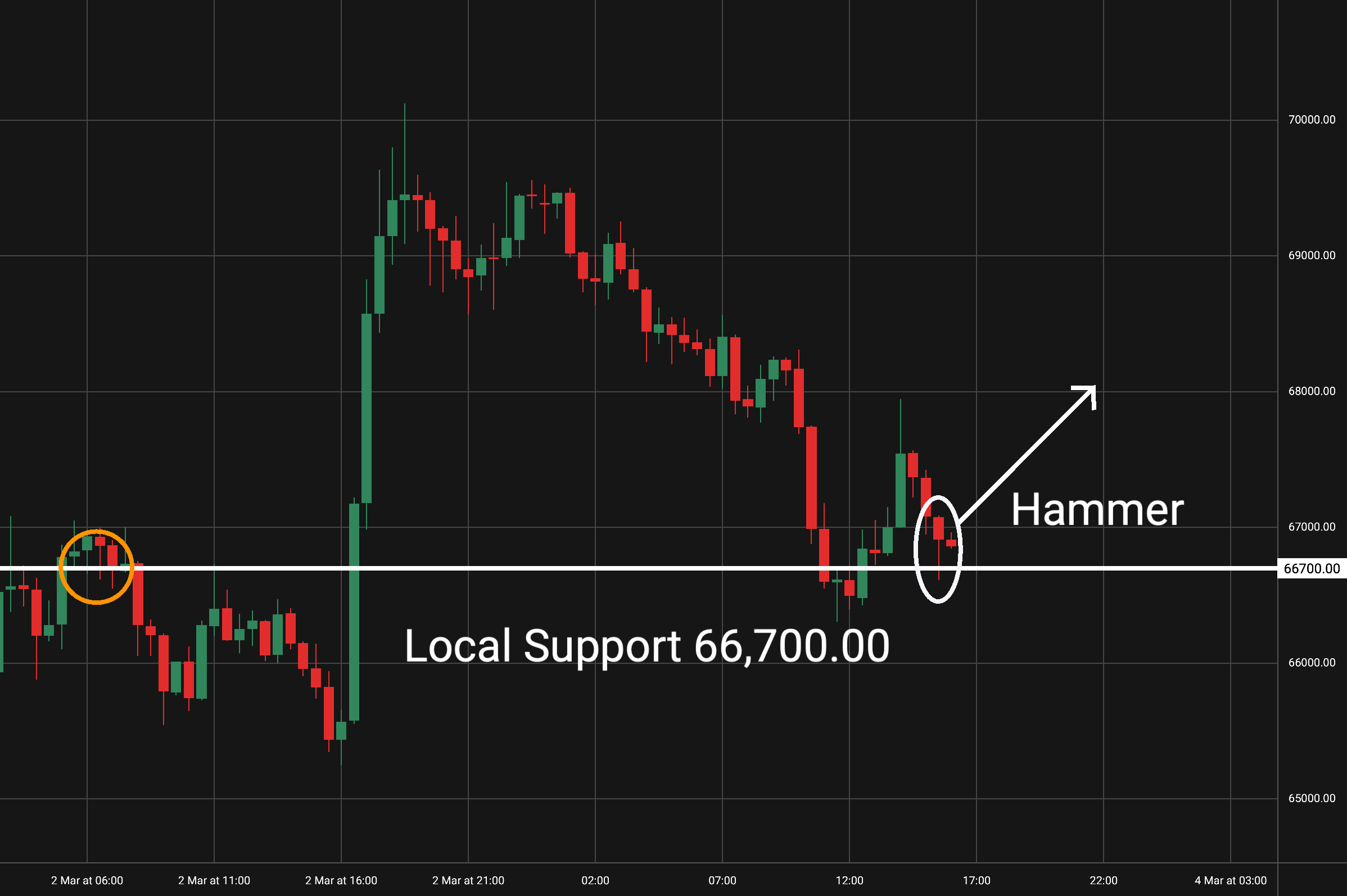 Intradenní Price Action patterny na bitcoinu 3.3.2026