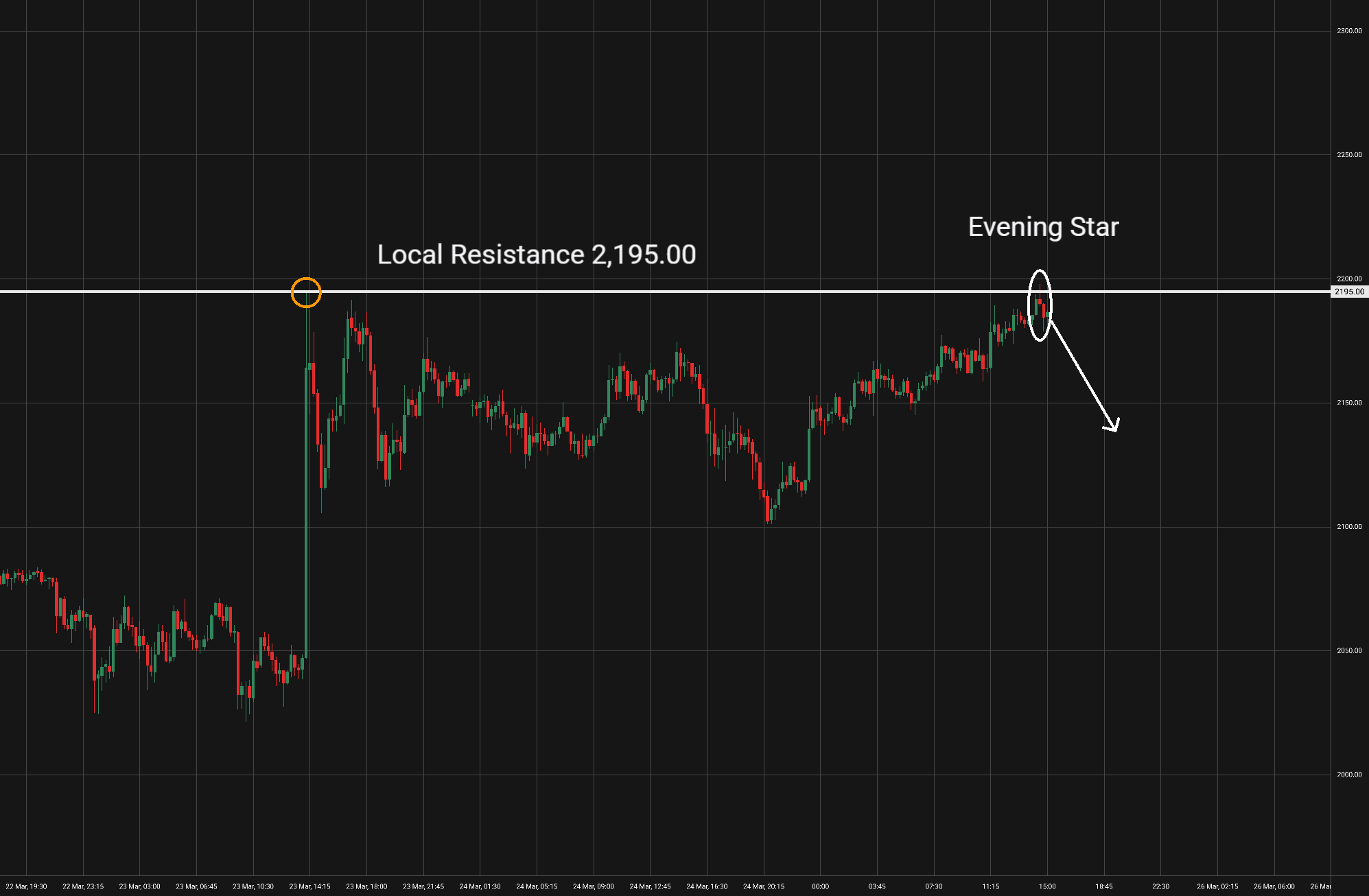 Intradenní Price Action patterny na ethereu 25.3.2026