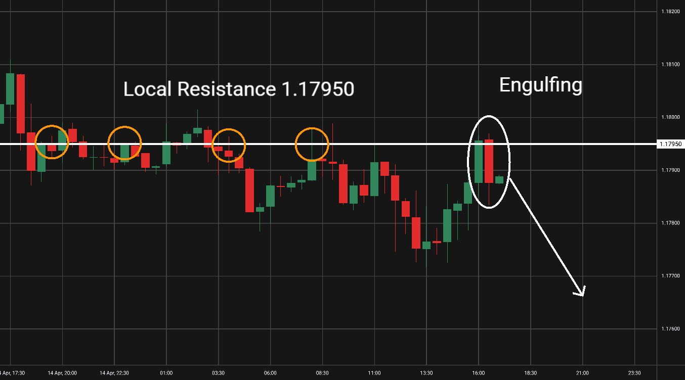 Intradenní Price Action patterny na EUR/USD 15.4.2026