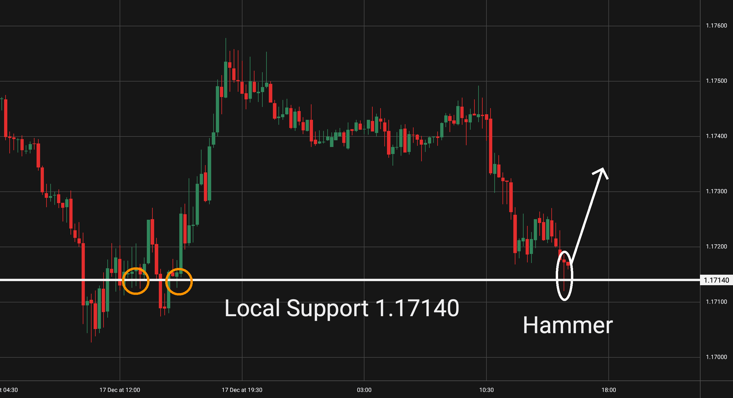 Intradenní Price Action patterny na EUR/USD 17.12.2024
