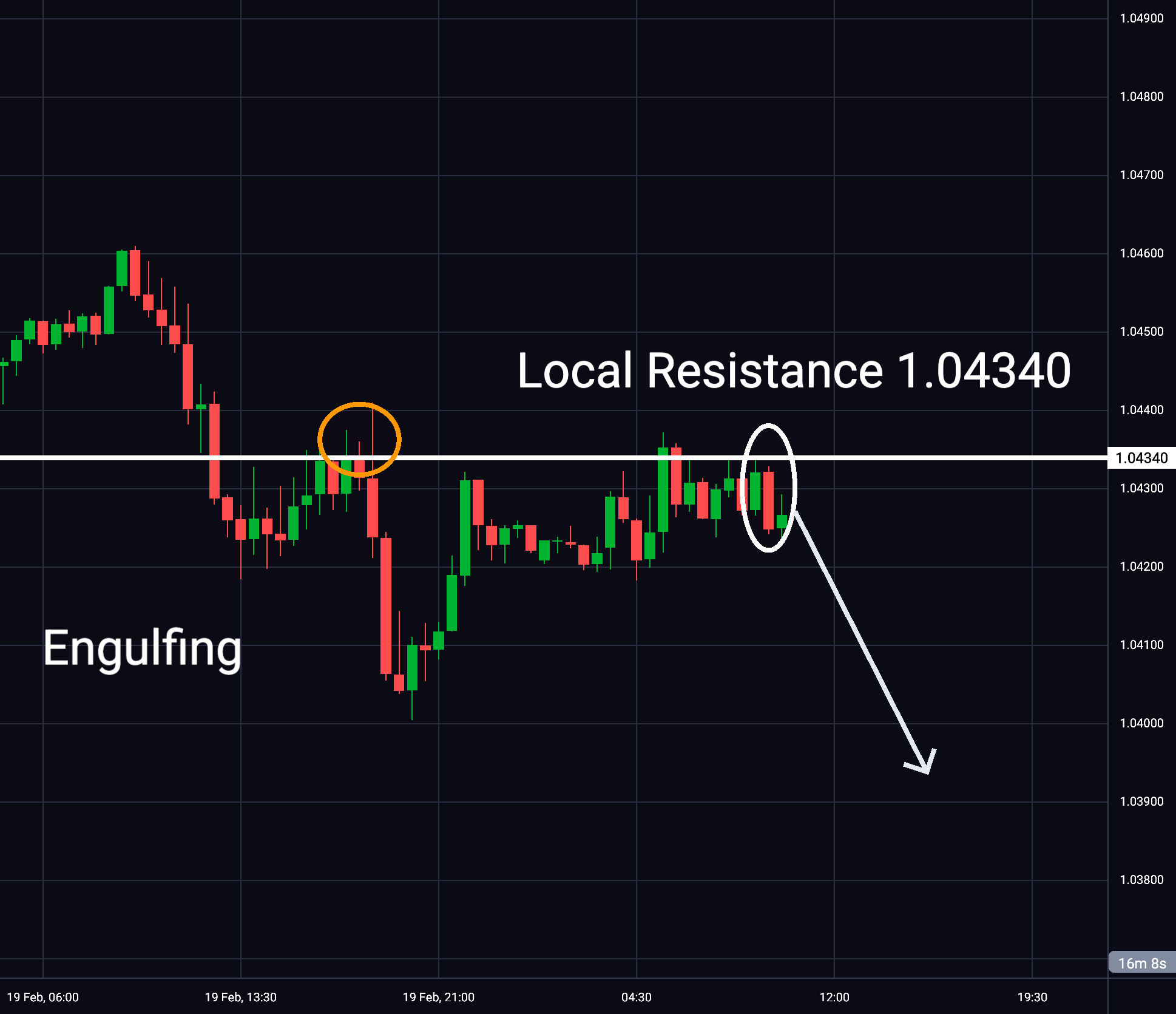 Intradenní Price Action patterny na EUR/USD 20.2.2024