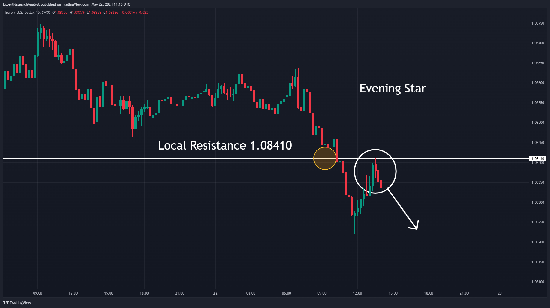 Intradenní Price Action patterny na EUR/USD 22.5.2024