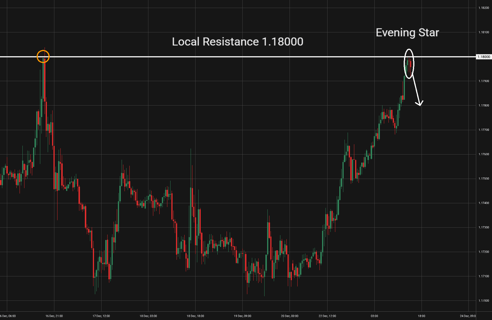 Intradenní Price Action patterny na EUR/USD 23.12.2025