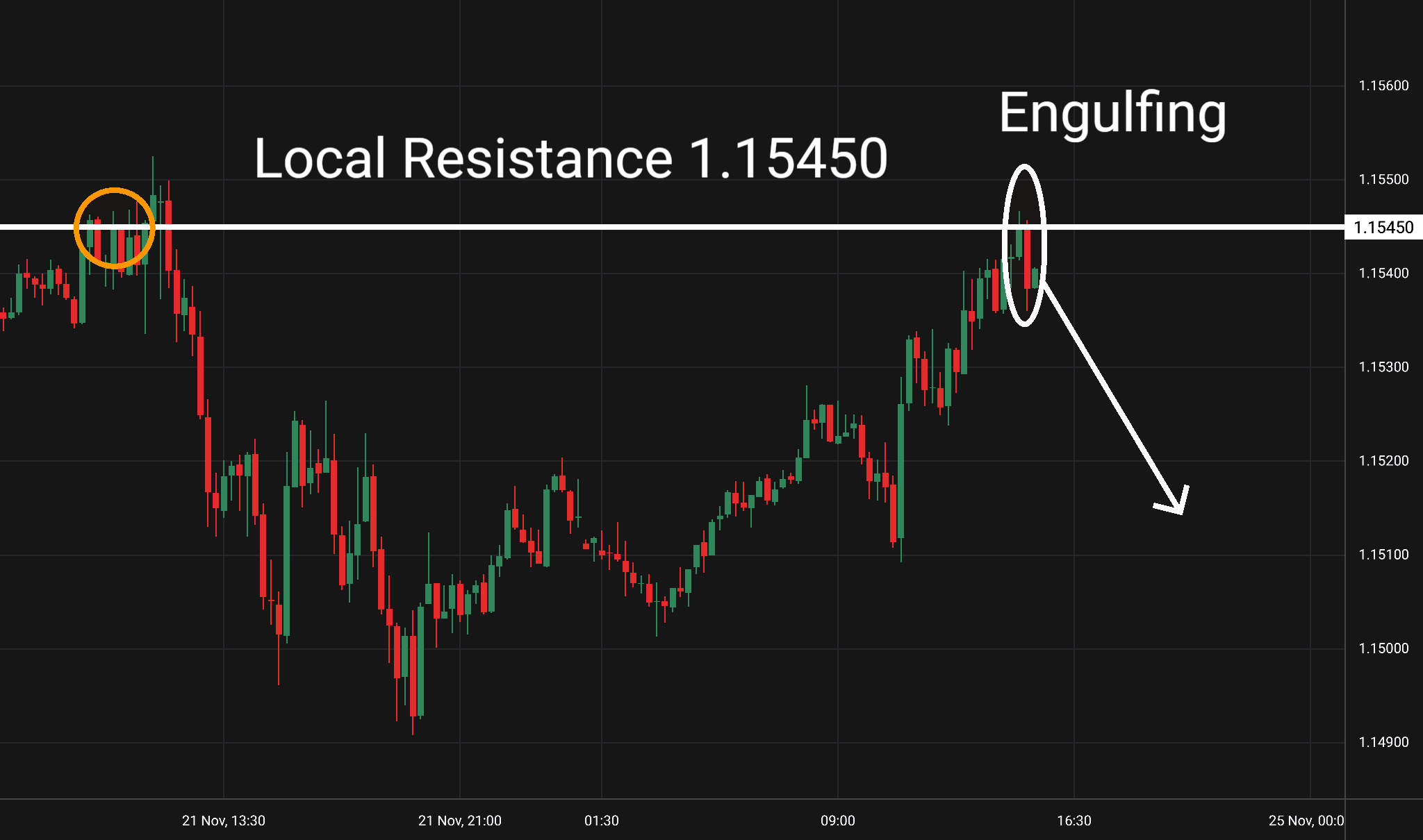 Intradenní Price Action patterny na EUR/USD 25.11.2024