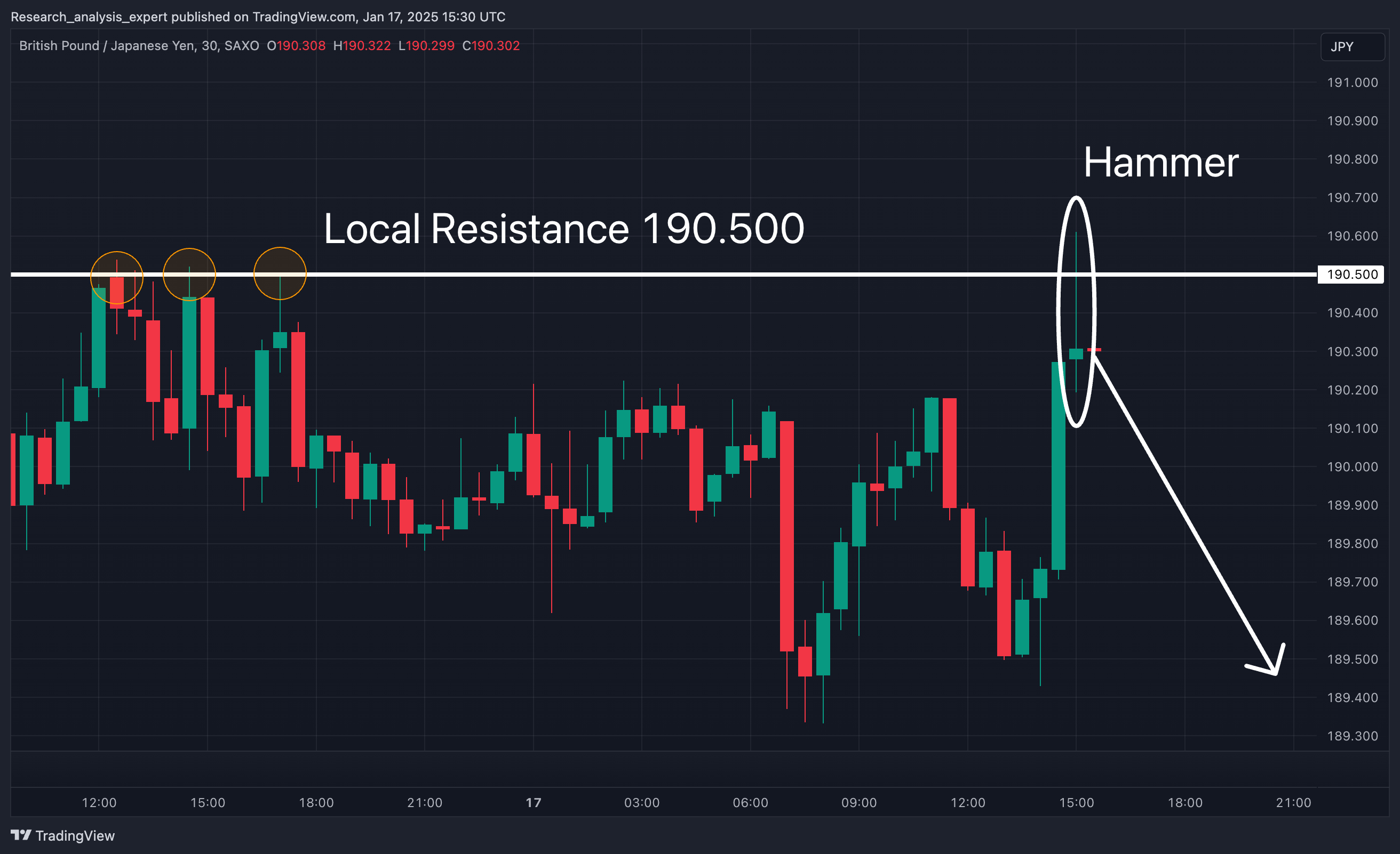 Intradenní Price Action patterny na GBP/JPY 17.1.2025