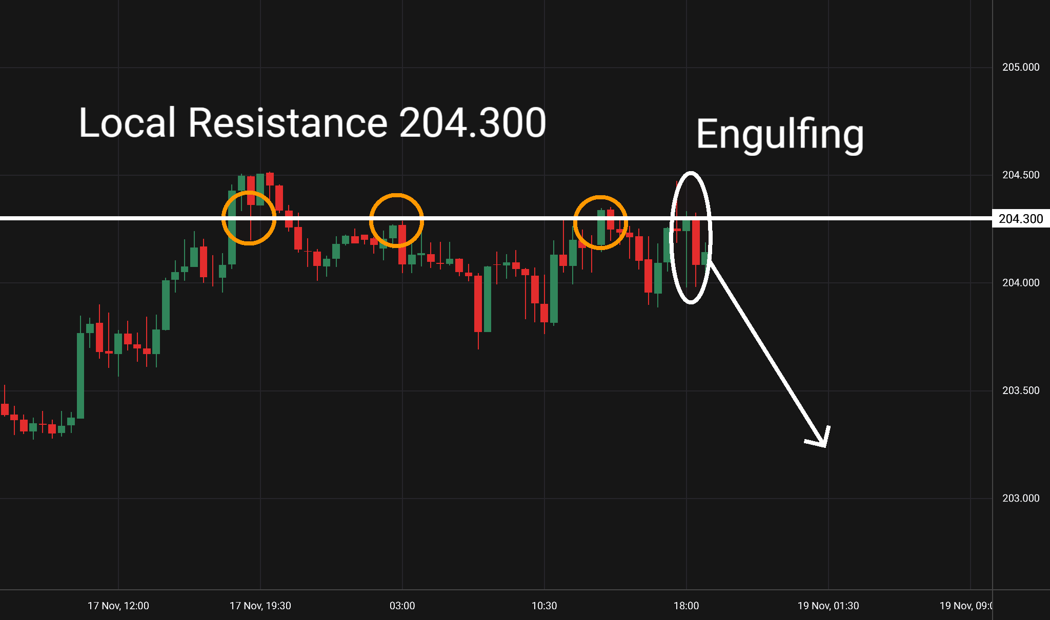 Intradenní Price Action patterny na GBP/JPY 18.11.2025