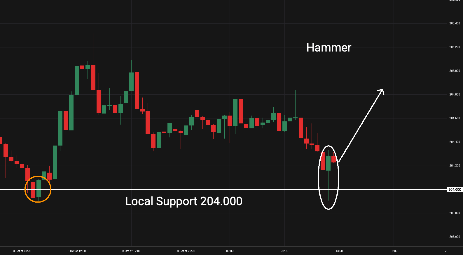 GBP/JPY: Tento měnový pár je na 30minutovém grafu v klesajícím trendu několik hodin a vytvořila se formace kladivo (Hammer) na lokálním supportu. -