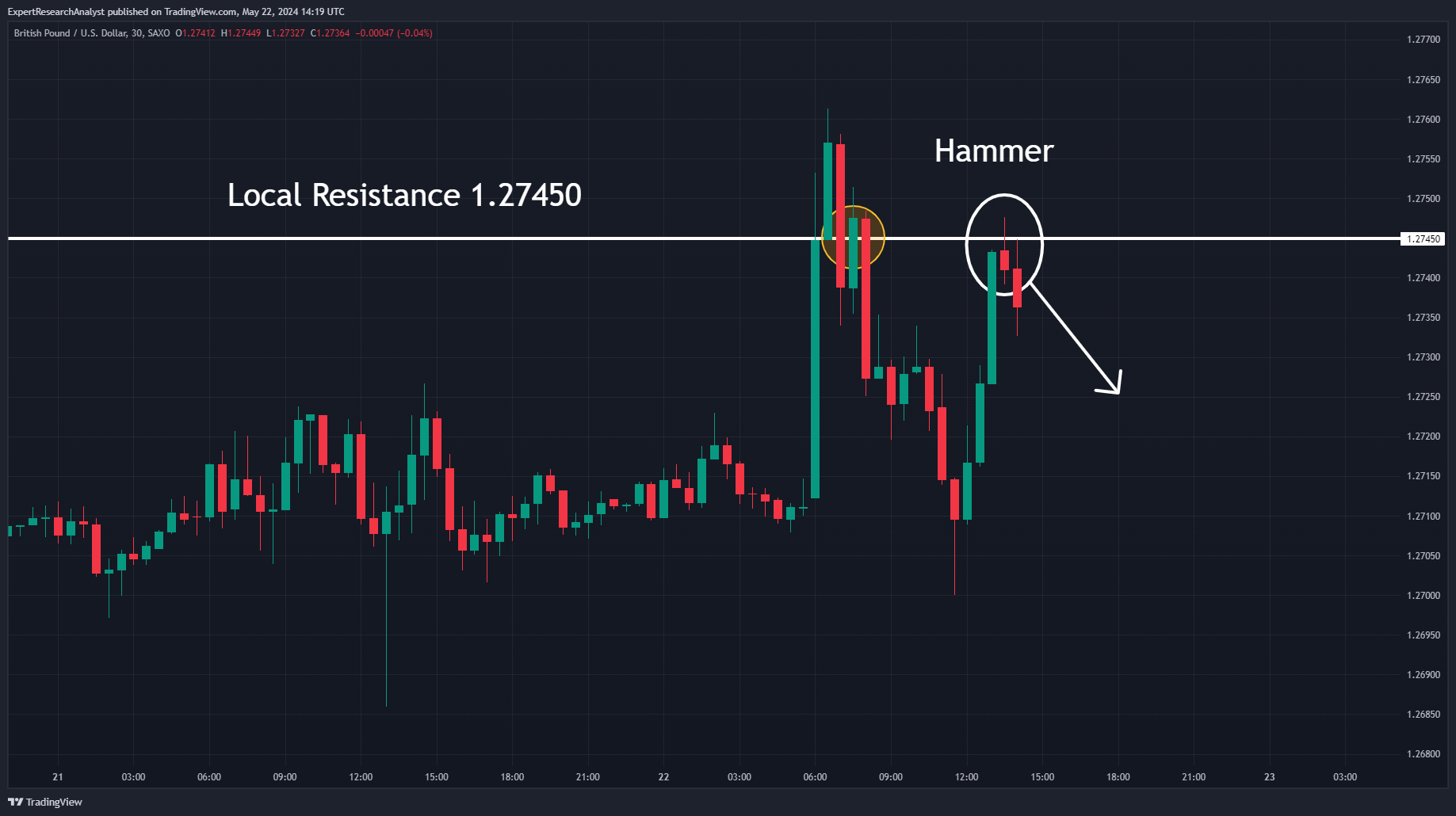 Intradenní Price Action patterny na GBP/USD 22.5.2024