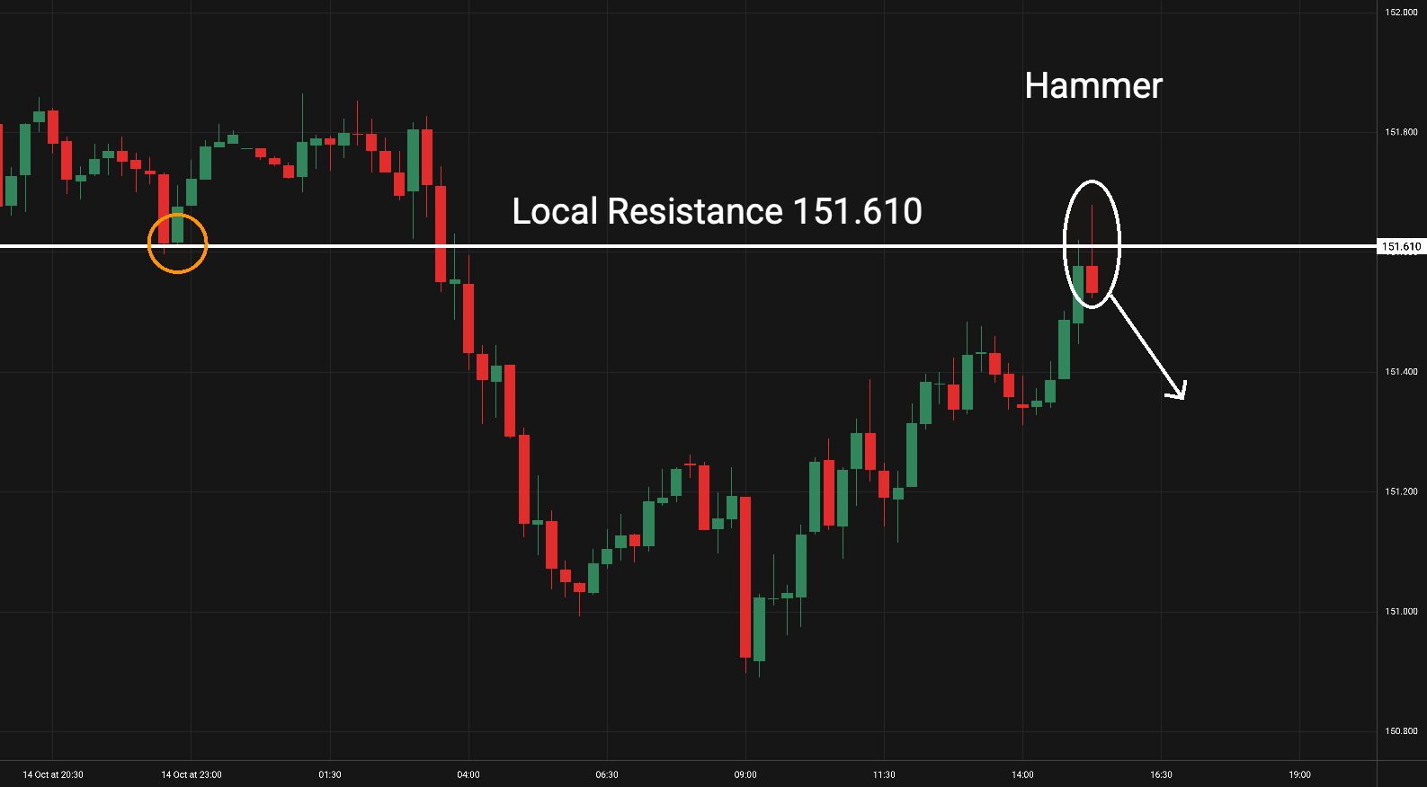 Intradenní Price Action patterny na USD/JPY 16.10.2024