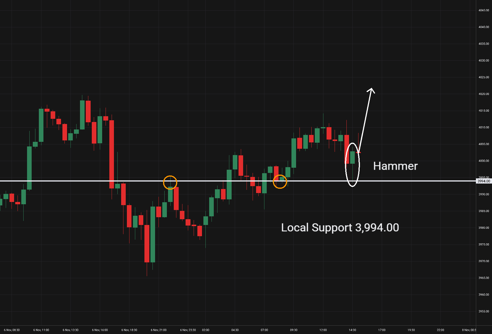 Intradenní Price Action patterny na zlatě 7.11.2025