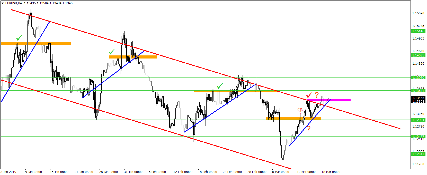 Dále potřebuji kvalitní support na kterém ta obratová formace bude sedět a má být prolomen. Jsou také vyznačeny, jen na H4 grafu lépe vyniknou.