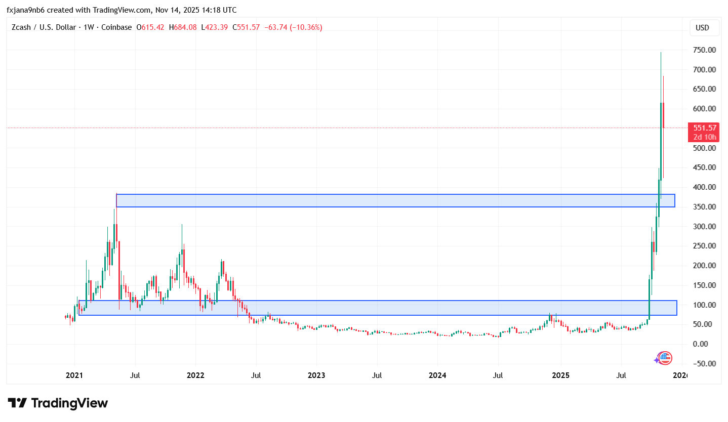 Zcash (ZEC), kryptoměna zaměřená na ochranu soukromí, zažívá na podzim výrazný růst, když jeho cena vyrostla z pouhých 45 dolarů na rekordních 750 dolarů – tedy o více než 1 500 % za dva měsíce. Zatímco hlavní kryptoměny jako Bitcoin a Ethereum zůstávají v úzkém obchodním pásmu, ZEC reprezentuje extrémní volatilitu a rychlé změny nálad na trhu. Někteří analytici, včetně známého obchodníka Altcoin Sherpa, už varují před možným přehřátím trhu a očekávají prudký obrat, přičemž RSI několikrát ukázal hodnoty typické pro bubliny. Přestože cena krátce klesla zpět na úroveň kolem 520 dolarů, objemy obchodů zůstávají vysoké, což naznačuje, že zájem investorů o soukromé kryptoměny je stále silný. Zcash tak zůstává vůdčí kryptoměnou v segmentu privacy coinů s rostoucím významem v investiční komunitě.