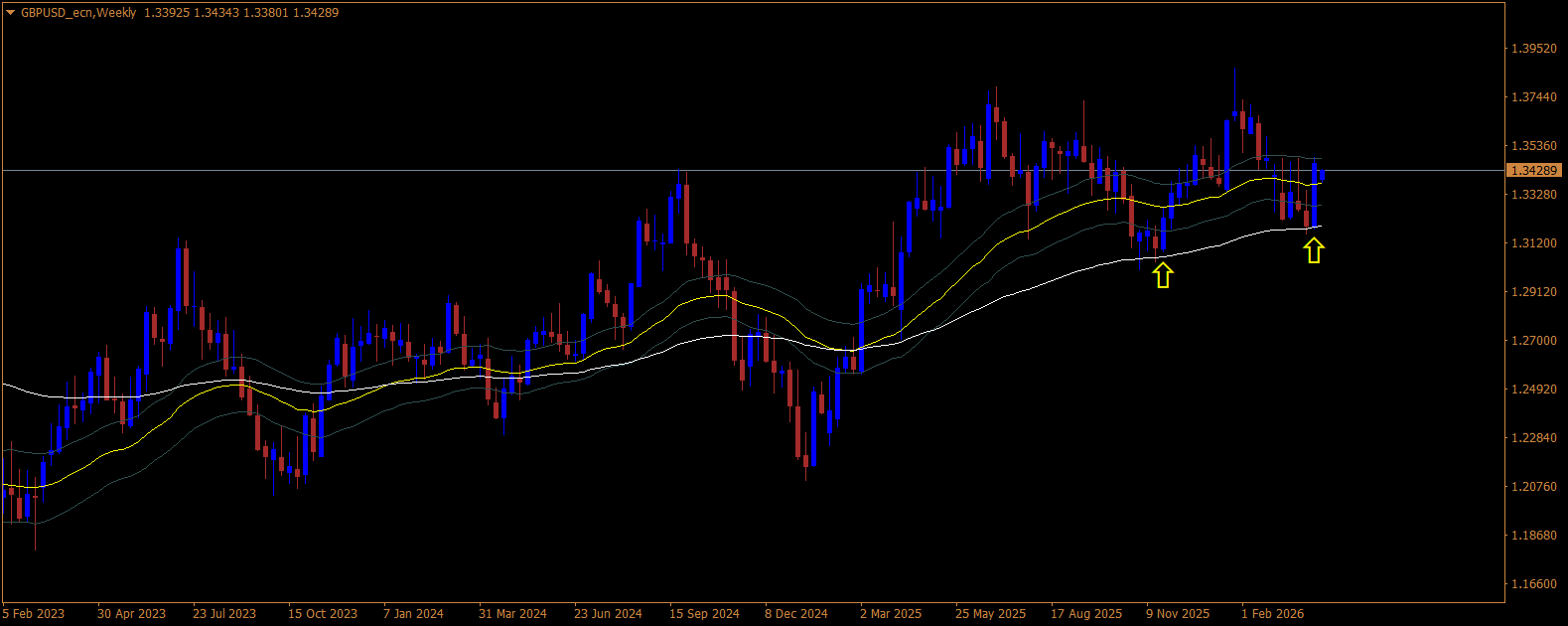 Vývoj měnového páru GBP/USD na týdenním grafu (W1):