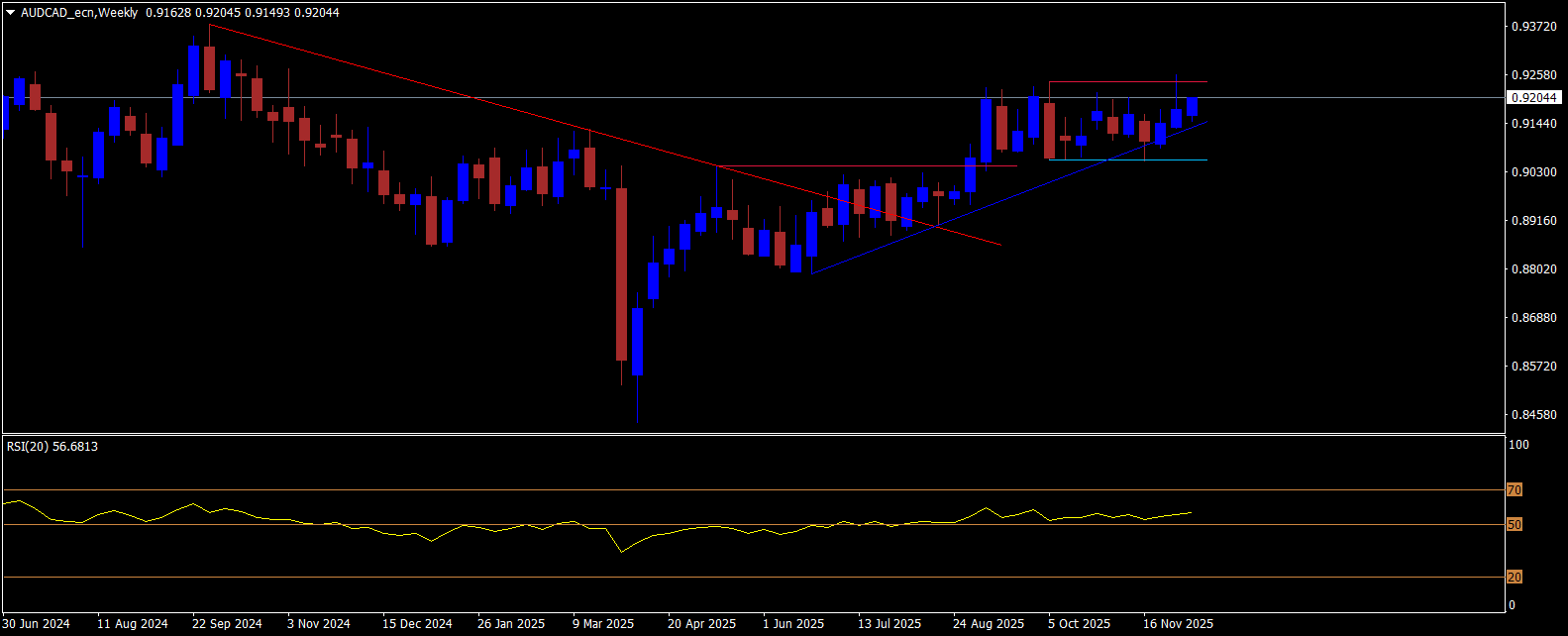 Vývoj měnového páru AUD/CAD na týdenním grafu (W1):