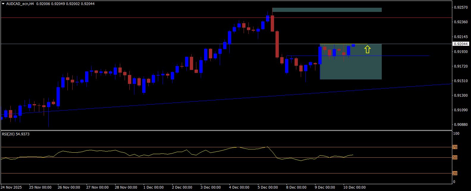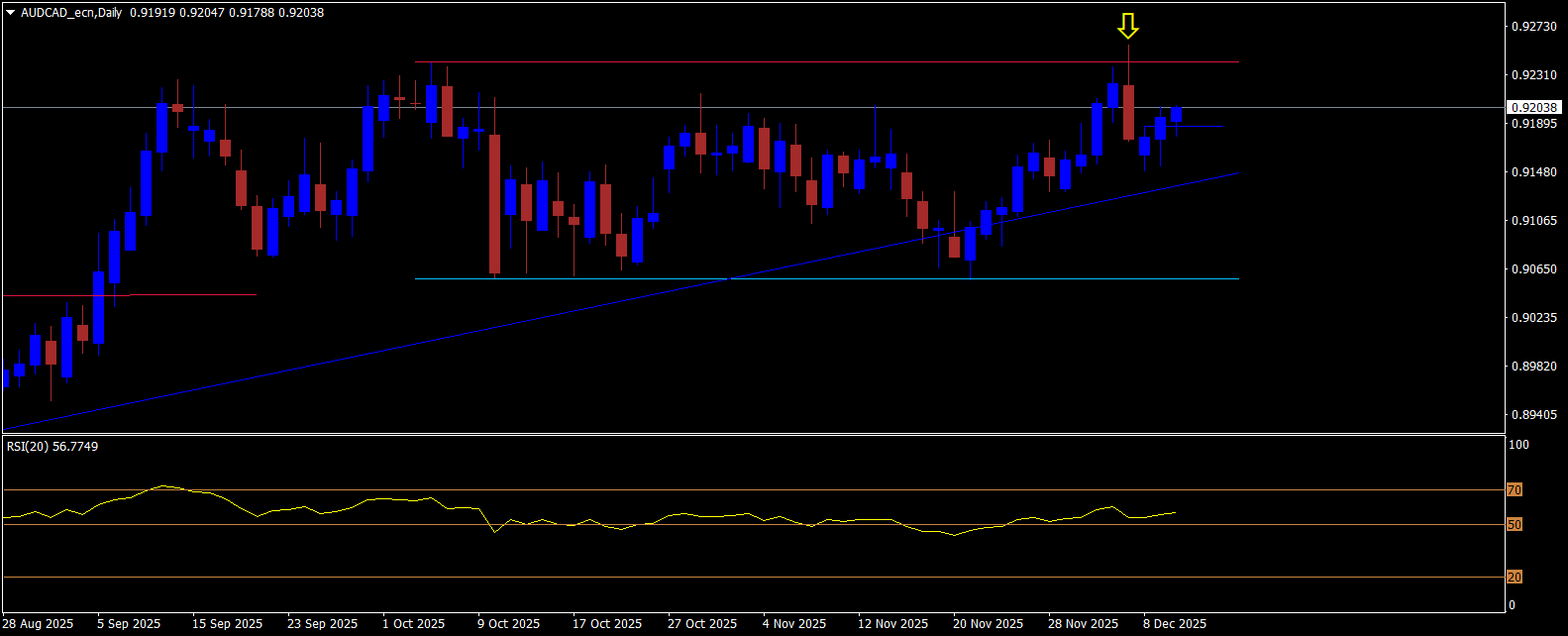 Kombinace vyšších a nižších time-frame vytváří ucelený technický obraz trhu. AUD/CAD se nachází v dlouhodobém rostoucím trendu, přičemž jeho krátkodobá struktura naznačuje možnost pokračování růstu po dokončení konsolidace. Dnešní obchodování však může být výrazně ovlivněno fundamenty – BoC a především Fed, jejichž rozhodnutí a projekce tradičně určují sentiment na dolarových párech i křížových CAD párech na několik dní dopředu. Opatrnost je tak na místě.
