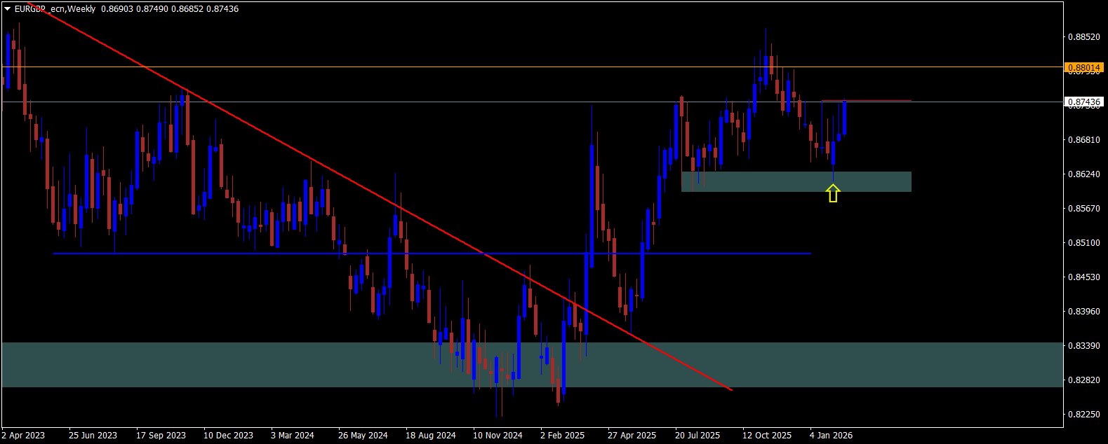 Reakce ceny v této oblasti naznačuje možnost pokračování růstu směrem k vyšším hodnotám pásma, což vytváří rámec pro detailnější analýzu na nižších timeframech. Současně však platí, že pohyb probíhá uvnitř dlouhodobé konsolidace, takže každý růst naráží na přirozené technické bariéry.