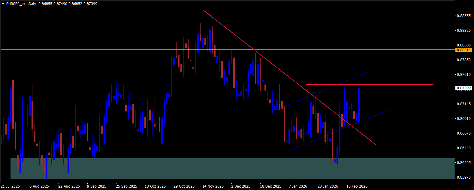 vývoj měnového páru EUR/GBP na denním grafu (D1):