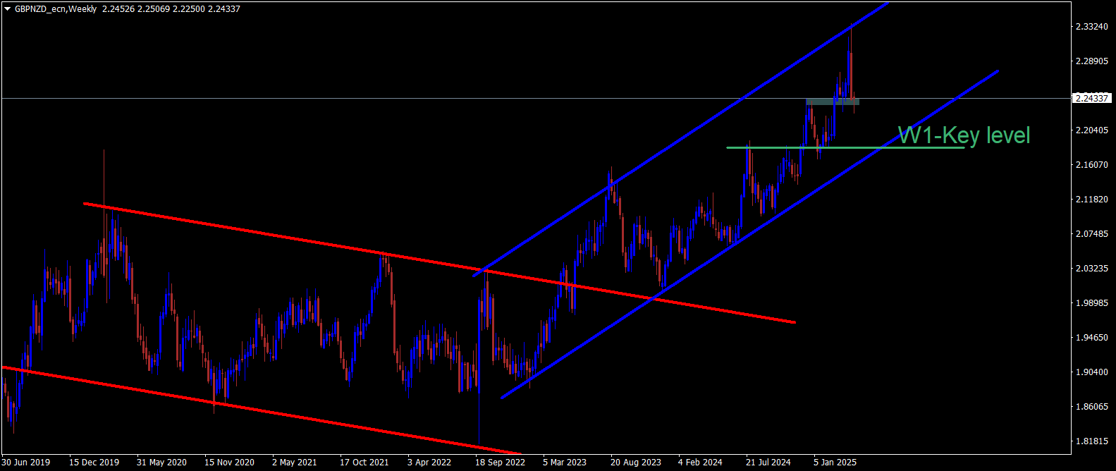 Vývoj měnového páru GBP/NZD na týdenním grafu (W1):