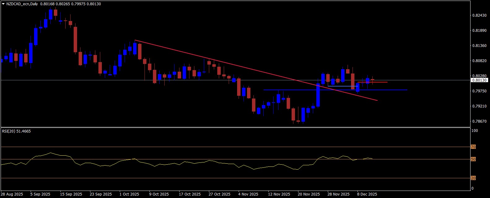 Kombinace vyšších a nižších timeframeů vytváří ucelený technický obraz trhu. NZD/CAD se postupně překlápí z dlouhodobého poklesu do růstového nastavení a nižší časové rámce tuto změnu zatím potvrzují. Multitimeframe analýza pomáhá lépe pochopit strukturu, vyhodnotit reakce na technické úrovně a připravit si jasné obchodní scénáře.