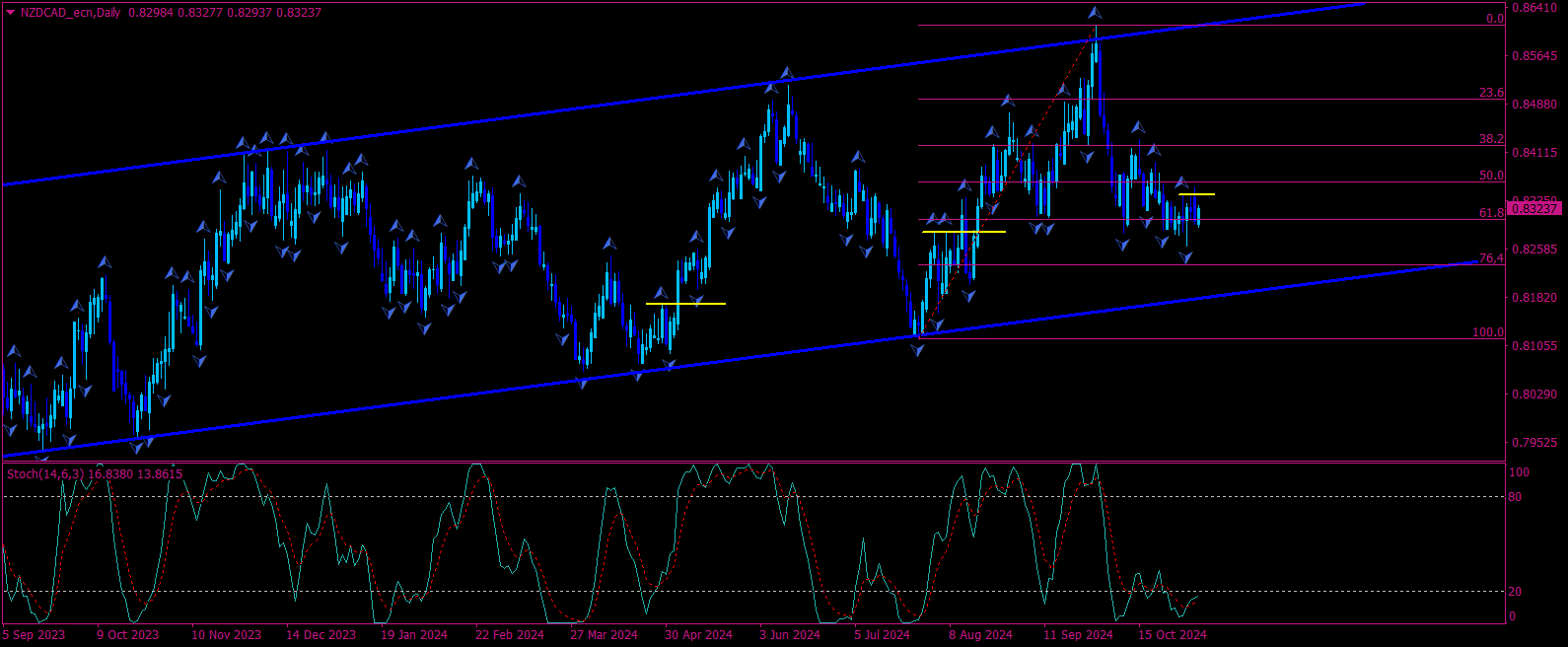Vývoj měnového páru NZD/CAD na denním grafu (D1):