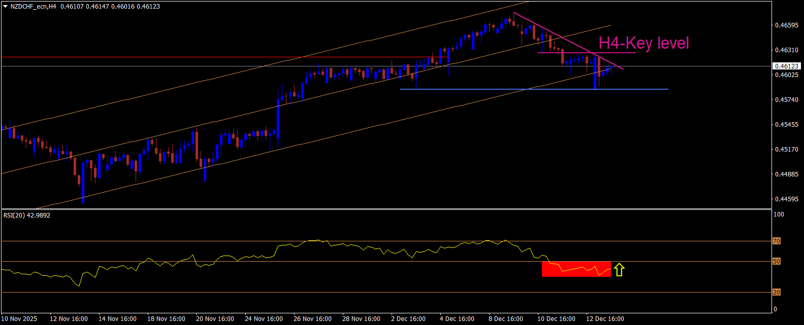 Vývoj měnového páru NZD/CHF na čtyřhodinovém grafu (H4):