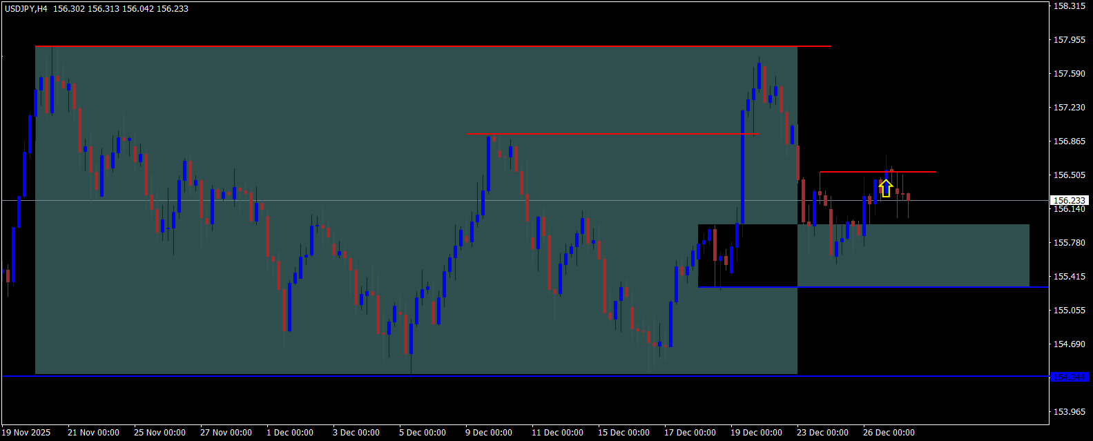 Vývoj měnového páru USD/JPY na čtyřhodinovém grafu (H4):