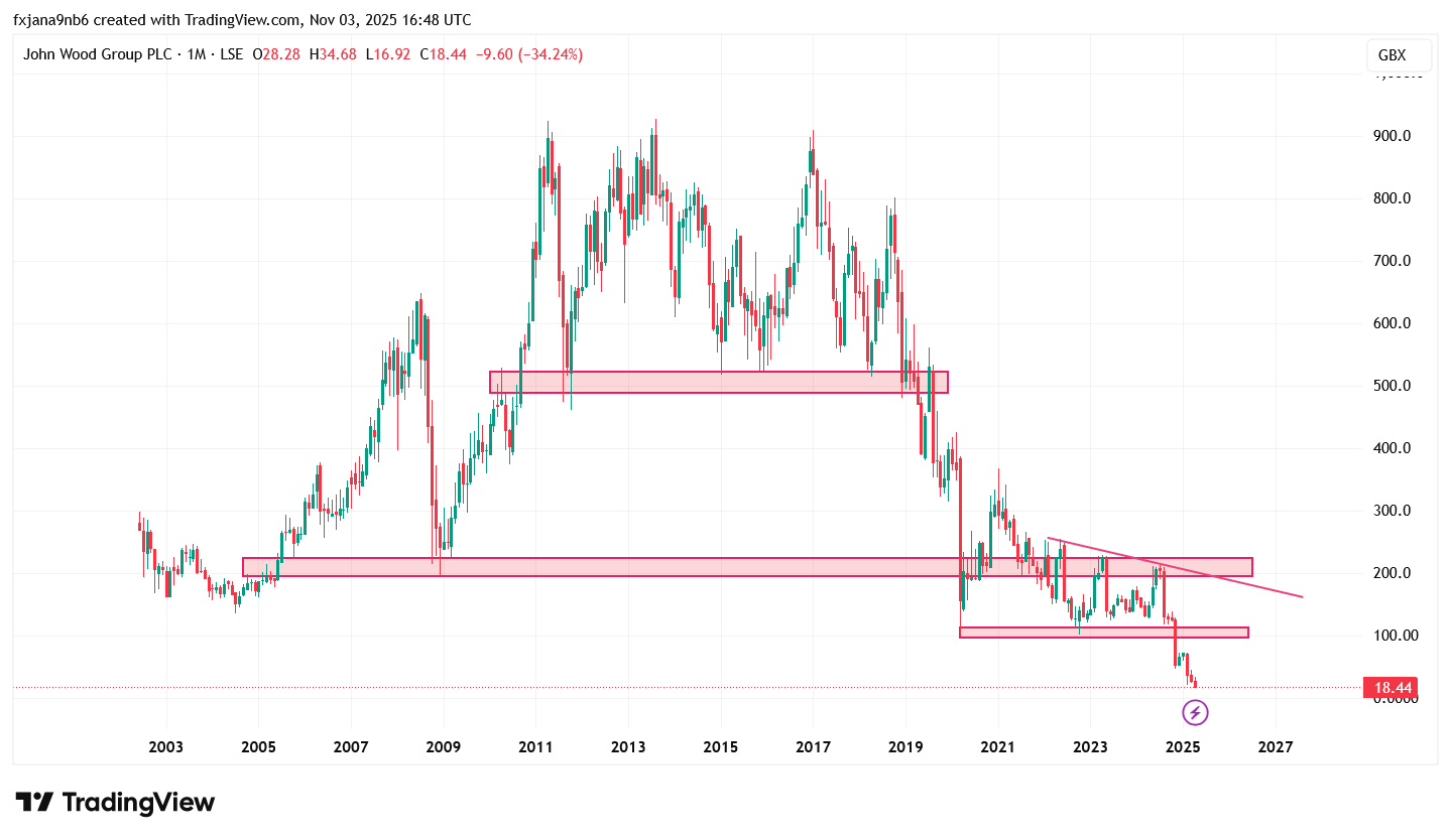 Akcie Wood jsou kotované na London Stock Exchange pod tickerem WG.+1 V posledních letech prožívají značné turbulence: v únoru 2025 firma oznámila, že bude mít negativní volné peněžní toky až do výše ~200 mil. USD v roce 2025, což vyvolalo prudký pokles akcií (~40 % nebo více). Další negativum: nezveřejnění auditovaných účtů 2024 včas, probíhající interní přezkum a možné restatements. Dividendy byly v posledních letech spíše opatrné či pozastavené – firma se soustředí na stabilizaci. V porovnání s indexem tohoto sektoru či s konkurencí je Wood výrazně pod tlakem.