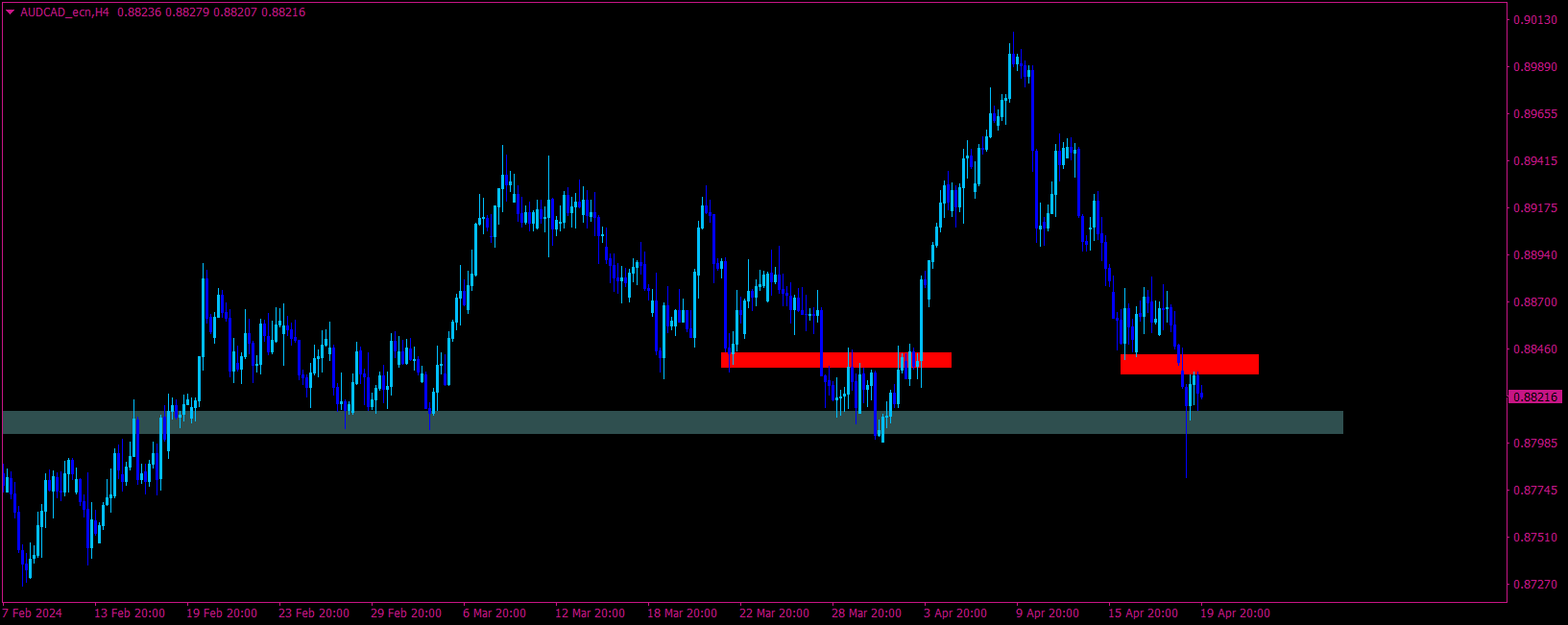 Vývoj měnového páru AUD/CAD na čtyřhodinovém grafu (H4):